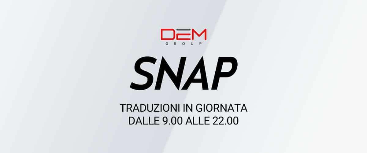 Dem Group è la prima azienda in Italia che mette a disposizione dei suoi clienti il servizio di traduzioni SNAP. Condividiamo il successo di questa iniziativa con tutti i nostri traduttori madrelingua dipendenti della Dem Group. È infatti grazie anche a loro, che oggi possiamo offrire questo nuovo servizio.